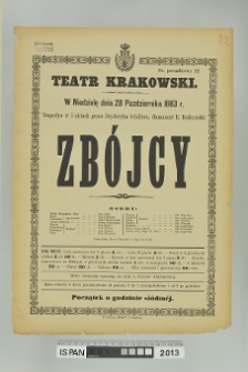 Digitalizacja zrealizowana w ramach Narodowego Programu Rozwoju Humanistyki. Projekt: "Polski afisz teatralny XVIII - XX wieczny. Naukowe opracowanie i udostępnianie do dalszych badań historyczno-teatralnych afiszów ze zbiorów Instytutu Sztuki PAN".