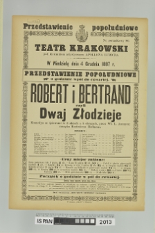 Digitalizacja zrealizowana w ramach Narodowego Programu Rozwoju Humanistyki. Projekt: "Polski afisz teatralny XVIII - XX wieczny. Naukowe opracowanie i udostępnianie do dalszych badań historyczno-teatralnych afiszów ze zbiorów Instytutu Sztuki PAN".