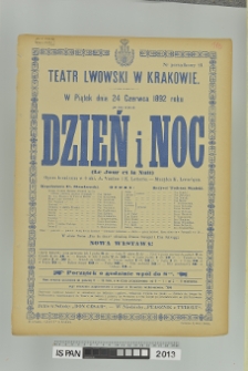 Digitalizacja zrealizowana w ramach Narodowego Programu Rozwoju Humanistyki. Projekt: "Polski afisz teatralny XVIII - XX wieczny. Naukowe opracowanie i udostępnianie do dalszych badań historyczno-teatralnych afiszów ze zbiorów Instytutu Sztuki PAN".