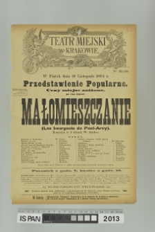 Digitalizacja zrealizowana w ramach Narodowego Programu Rozwoju Humanistyki. Projekt: "Polski afisz teatralny XVIII - XX wieczny. Naukowe opracowanie i udostępnianie do dalszych badań historyczno-teatralnych afiszów ze zbiorów Instytutu Sztuki PAN".