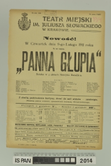 Digitalizacja zrealizowana w ramach Narodowego Programu Rozwoju Humanistyki. Projekt: "Polski afisz teatralny XVIII - XX wieczny. Naukowe opracowanie i udostępnianie do dalszych badań historyczno-teatralnych afiszów ze zbiorów Instytutu Sztuki PAN".