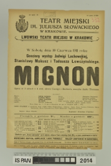 Digitalizacja zrealizowana w ramach Narodowego Programu Rozwoju Humanistyki. Projekt: "Polski afisz teatralny XVIII - XX wieczny. Naukowe opracowanie i udostępnianie do dalszych badań historyczno-teatralnych afiszów ze zbiorów Instytutu Sztuki PAN".