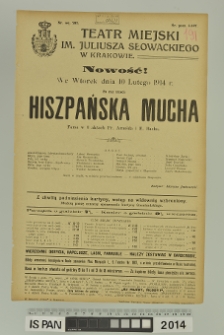Digitalizacja zrealizowana w ramach Narodowego Programu Rozwoju Humanistyki. Projekt: "Polski afisz teatralny XVIII - XX wieczny. Naukowe opracowanie i udostępnianie do dalszych badań historyczno-teatralnych afiszów ze zbiorów Instytutu Sztuki PAN".