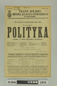 Digitalizacja zrealizowana w ramach Narodowego Programu Rozwoju Humanistyki. Projekt: "Polski afisz teatralny XVIII - XX wieczny. Naukowe opracowanie i udostępnianie do dalszych badań historyczno-teatralnych afiszów ze zbiorów Instytutu Sztuki PAN".