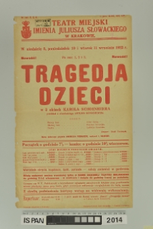 Digitalizacja zrealizowana w ramach Narodowego Programu Rozwoju Humanistyki. Projekt: "Polski afisz teatralny XVIII - XX wieczny. Naukowe opracowanie i udostępnianie do dalszych badań historyczno-teatralnych afiszów ze zbiorów Instytutu Sztuki PAN".