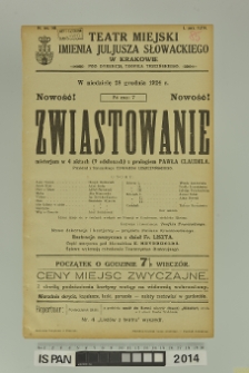 Digitalizacja zrealizowana w ramach Narodowego Programu Rozwoju Humanistyki. Projekt: "Polski afisz teatralny XVIII - XX wieczny. Naukowe opracowanie i udostępnianie do dalszych badań historyczno-teatralnych afiszów ze zbiorów Instytutu Sztuki PAN".