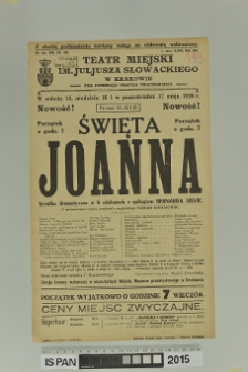 Digitalizacja zrealizowana w ramach Narodowego Programu Rozwoju Humanistyki. Projekt: "Polski afisz teatralny XVIII - XX wieczny. Naukowe opracowanie i udostępnianie do dalszych badań historyczno-teatralnych afiszów ze zbiorów Instytutu Sztuki PAN".