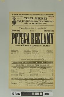 Digitalizacja zrealizowana w ramach Narodowego Programu Rozwoju Humanistyki. Projekt: "Polski afisz teatralny XVIII - XX wieczny. Naukowe opracowanie i udostępnianie do dalszych badań historyczno-teatralnych afiszów ze zbiorów Instytutu Sztuki PAN".
