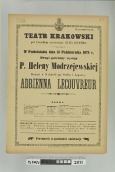 Digitalizacja zrealizowana w ramach Narodowego Programu Rozwoju Humanistyki. Projekt: "Polski afisz teatralny XVIII - XX wieczny. Naukowe opracowanie i udostępnianie do dalszych badań historyczno-teatralnych afiszów ze zbiorów Instytutu Sztuki PAN".