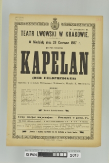 Digitalizacja zrealizowana w ramach Narodowego Programu Rozwoju Humanistyki. Projekt: "Polski afisz teatralny XVIII - XX wieczny. Naukowe opracowanie i udostępnianie do dalszych badań historyczno-teatralnych afiszów ze zbiorów Instytutu Sztuki PAN".